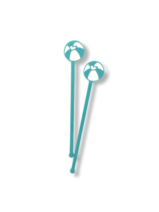 Beach Ball Turquoise Swizzle Stir Sticks, Set of 8