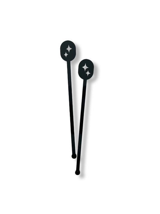 Star Oval Black Swizzle Stir Sticks, Set of 8