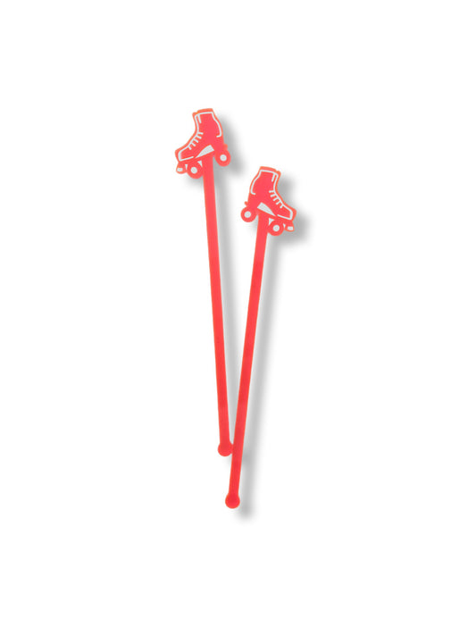 Roller Skate Neon Pink Swizzle Stir Sticks, Set of 8